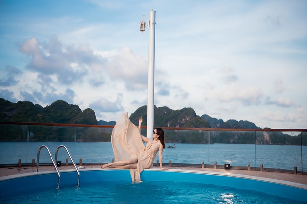 Nhìn vô vàn tấm hình của Huyền My trên du thuyền này mới thấy hết sức hút của du thuyền Heritage Bình Chuẩn.